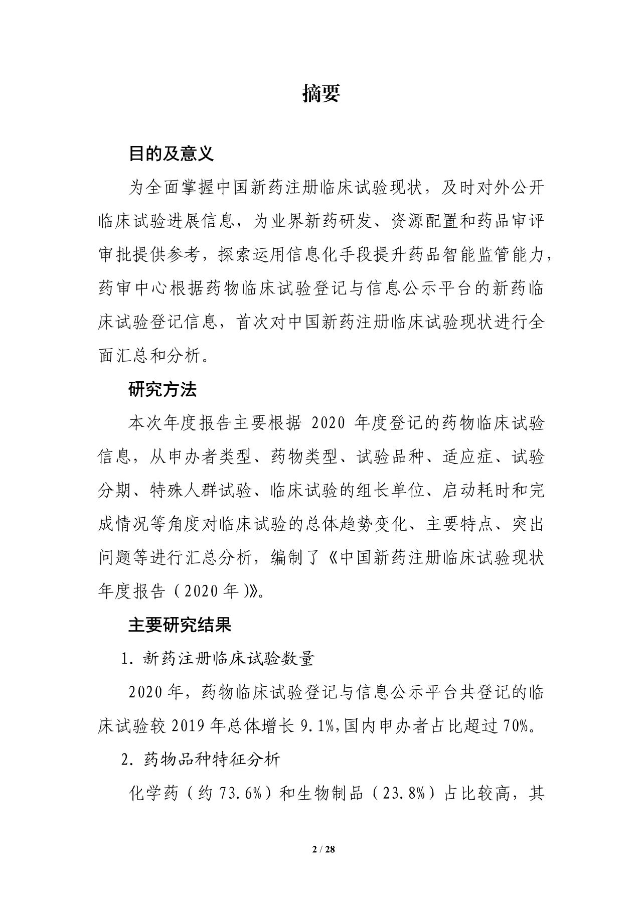 快讯!药审中心发布《中国新药注册临床试验现状年度报告(2020年)》