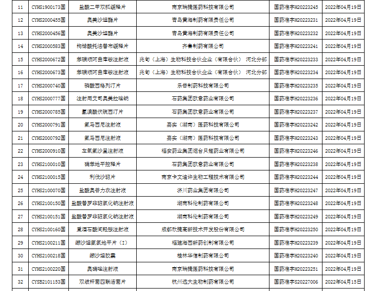 另外,国家药监局还公布了期间获得药品生产批准文号的药品名单,以下为已准上市生产的药品信息汇总: